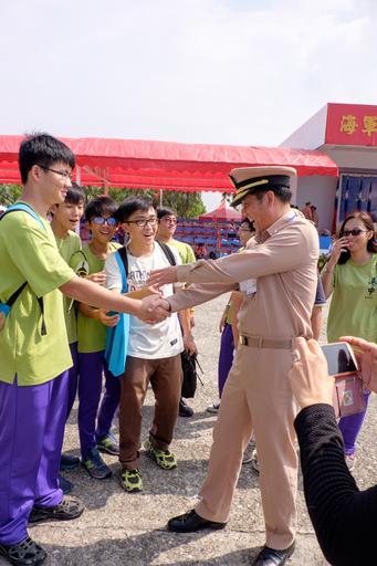 | Keywords: Zhan-Hao Hu, ROCN Rear Admiral Handshaking with Student of Kaohsiung Siaogang Senior High School in 2015 Zuoyang Naval Base Open Day 20151024.jpg zh-tw 2015年左營軍港營 開放活動,海軍官校校長胡展豪少將與高雄小港高中學生 念合影後,和學生握手 學生: 和校長握手,明年直接上海官! 副官: 海官可是很難 的 設計對白 2015-10-24 11 07 44 Own 玄史生 other versions 2015 Zuoying Naval Base Open Day Military people of Taiwanese Navy Admirals of the Republic of China Navy Military people and civilians Handshakes involving the military 玄史生写 文庫 Taken with Fujifilm X-T1 Uploaded with UploadWizard cc-zero |
