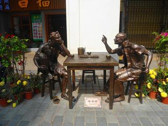 Keywords: zhongshan china statue statues table chairs art artistic sidewalk building outside