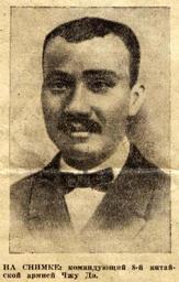 Keywords: Zhu De1937.jpg en Chinese Communist military leader Zhu De ru Командующий 8-й ационально- еволюционной а мией Чжу Дэ Известия 3 октяб я 1937г russian magazine Известия Author 1937 PD-Old Zhu De