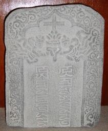 Keywords: Zhu Yanke 1311.jpg en Gravestone of Zhu Yanke with Phags-pa inscription dated 1311 from Quanzhou China own BabelStone 2005-01-26 24 54 33 43 N 118 36 43 21 E region CN Gravestones in China Phagspa inscriptions Quanzhou Overseas Relations Museum
