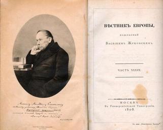| Keywords: ZhukovskyBasil.jpg en Vasily Andreyevich Zhukovsky and «Herald of Europe» ru Василий Анд еевич Жуковский и «Вестник Ев опы» scanned by triumphato Author s 1850 PD-RusEmpire Vasily Zhukovsky Vestnik Evropy 1808 Cover of book scanned by Triumphato Photographs scanned by Triumphato |