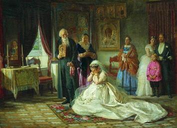 | Keywords: Zhuravlev 05.jpeg Firs Sergeyevich Zhuravlev 1836-1901 Before the wedding Фи с Се геевич Жу авлёв 1836-1901 Пе ед венцом Location Госуда ственный Русский музей <br> Dimensions 105х143 cm <br> Web source http //www art-catalog ru/picture php id_picture 12565 <br> Technique oil on canvas 1874 Creator Firs Zhuravlev File Zhuravlev 03 jpg PD-old-100 Firs Zhuravlev Marriage of Russia in art Arranged marriage | ||||