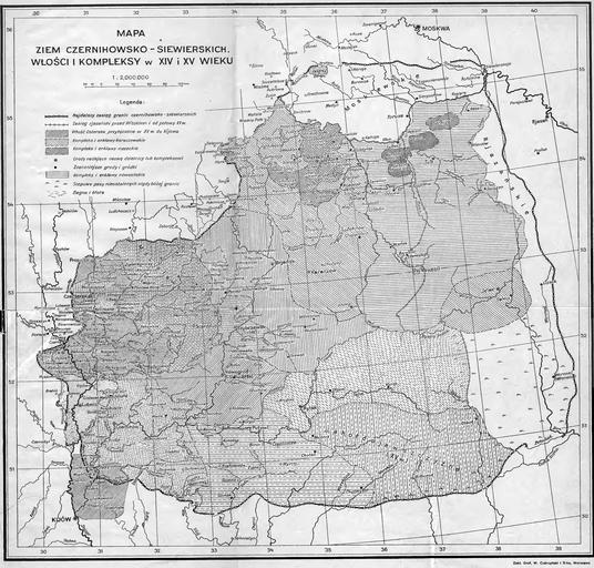 Keywords: Ziemie Czernihowsko-Siewierskie w XV wieku.jpg S Kuczyńskiego «Ziemie Czernihowsko-Siewierskie pod rządami Litwy» wydanej w Warszawie w 1936 roku ru Ка та из книги Стефана Кучинского «Че нигово-Севе ские земли в составе Литвы» изданной в Ва шаве в 1936 году uk апа з книги Стефана Кучинського «Че нігово-Сіве ські землі у складі Литви» виданої у Ва шаві 1936 оку Ziemie Czernihowsko-Siewierskie pod rządami Litwy Stefan Maria Kuczyński 1936 PD-old Old maps of Grand Duchy of Lithuania Maps of the history of Russia Maps of the Kingdom of Poland Jagiellons Severians Territorial evolution of Poland