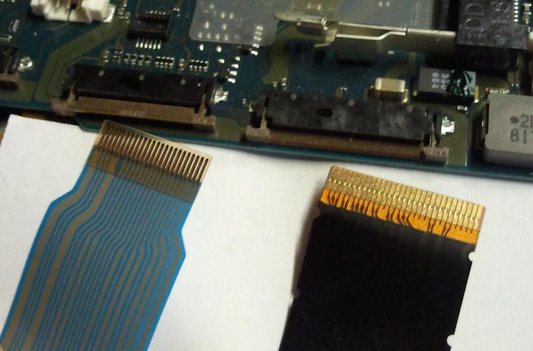 | Keywords: ZIF connector and FFC.jpg  en This is a picture of a pair of zero insertion-force connectors on a laptop mainboard as well as the flat flex cables that connect to them own Zeroping 2011-03-06 Cc-zero Flexible flat cables Zero Insertion Force |