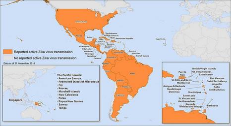 | Keywords: Zikamain 112116 930.jpg en All countries and territories with active Zika virus transmission 2016-11-21 http //www cdc gov/zika/geo/active-countries html U S Centers for Disease Control and Prevention other versions PD-USGov 2016 Zika virus outbreak maps |
