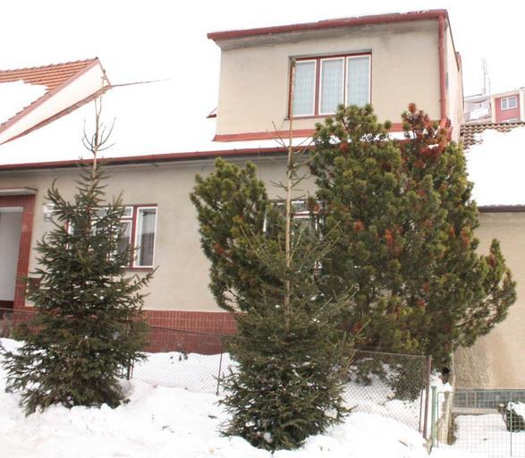 Keywords: Zima 2010 01 22 1109.JPG en group of trees spruce and Mountain Pine cs skupina jehličnanů mladé smrky stará borovice kleč zima 2010 Brno Komín Chaloupky own I Sáček senior 2010-01-22 Pinus mugo cultivars Plants in Brno-Komín