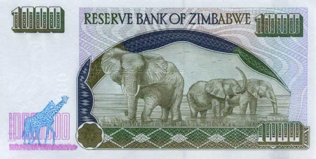 | Keywords: Zimbabwe $1000 12b 2003 Reverse.jpg This is the obverse of a paper banknote of the Zimbabwe Dollar Transferred from http //en wikipedia org en wikipedia 2008-10-29 Original uploader was Mangwanani at http //en wikipedia org en wikipedia PD-ZW-CURRENCY PD-ZW-currency original upload log page en wikipedia Zimbabwe_ 241000_12b_2003_Reverse jpg 2008-10-29 13 51 Mangwanani 550×284× 29476 bytes <nowiki> Summary This is an image of the front of the paper Zimbabwe dollar which circulated from 2001 and 2004 Use of this image in article Banknotes of the Reserve Bank of Zimbabwe is believed to be fair use because It adds </nowiki> Banknotes of Zimbabwe 1994-2003 Elephants on banknotes Banknotes with a face value of 1000 Giraffes on banknotes Blue banknotes of Zimbabwe |