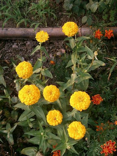 Keywords: zinnia zinnia elegans yellow flowers flower bed