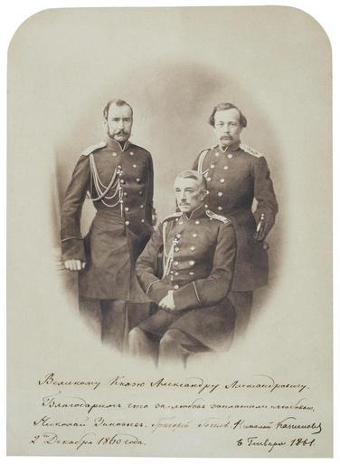 | Keywords: Zinowiew N W Gogel G F Kaznakow N G.jpg ru По т ет иколая Васильевича Зиновьева Г иго ия Федо овича Гогеля иколая Геннадьевича Казнакова Alexander Dmitrievich Zinoviev 1854-1931 russischer Politiker; General GOGEL; Nikolaj KAZNAKOW 1824-1885 General der Infanterie In 1875-1881 war er General-Gouverneur von Westsibirien und Befehlshaber der Sibirischen Kosaken-Armee http //www hermitagemuseum org/fcgi-bin/db2www/fullSize mac/fullSize selLang Russian dlViewId E 2B23PL4KW9IWNN3SSH size big selCateg picture dlCategId P4H 4UD2ZDQQ6S6 2B40 comeFrom quick 1861 Author PD-old PD-RusEmpire House of Zinoviev Gogel family Kaznakov family |