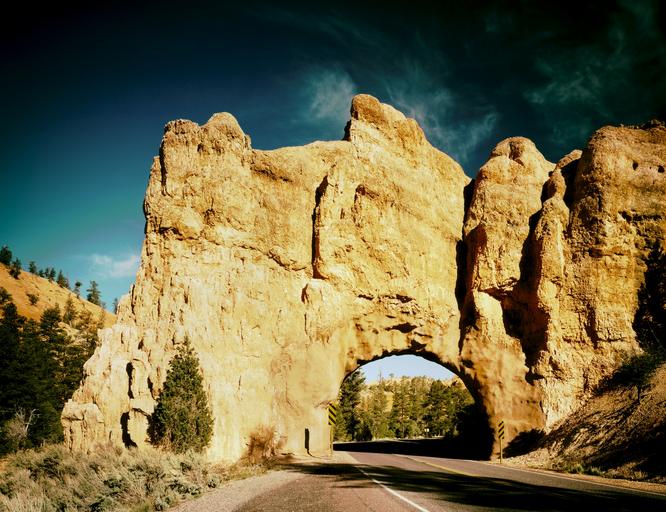 Keywords: zion national park utah mountains formation arch sky clouds landscape scenic destinations nature outside road highway
