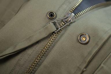 Keywords: zip closure hack detail jacket olive press-studs macro close green button