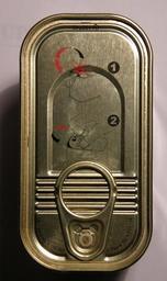 | Keywords: ZipperDose.JPG en Tin-opener de Dosenöffner mit Zipper Selbst fotografiert Own work User StromBer 2008-11-15 Zipper an Frühstücksfleisch-Dose mit den <br>US-Patent Nummer 6 126 029 + 5 217 134 Canned food Patents Patents from the United States |
