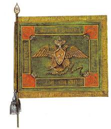 | Keywords: Znamya Georgiyevskiy Nizhegorodskogo dragunskogo polka 1828.jpg Saint George flag of the Nizhny Novgorod Dragoon Regiment 1828 Знамя Гео гиевский ижего одского д агунского полка 1828 года 1828 http //www vexillographia ru/russia/rarmy/17drag jpg unknown other versions insignia PD-RusEmpire Dragoon Regiment flags of the Russian Empire Images from vexillographia ru Photographs of military flags of the Russian Empire | ||||