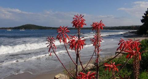 Keywords: zonza corsican beach sea side flowers waves nature landscape holiday france travel