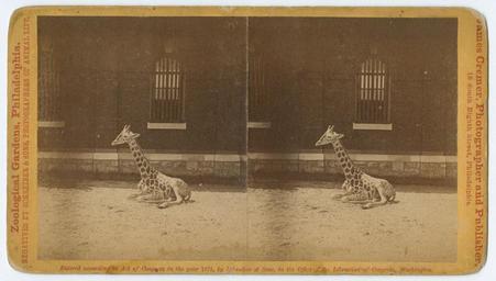 | Keywords: stereographs philadelphia zoos zoological society zoologicalsociety zoological garden zoologicalgarden fairmount park fairmountpark giraffes animals james cremer jamescremer Shows a giraffe lying in a cage at the Zoological Garden in Fairmount Park, Philadelphia, 1875. A window covered in bars is visible on the wall behind the giraffe. Accession number: P.2011.47.1621 Shows a giraffe lying in a cage at the Zoological Garden in Fairmount Park, Philadelphia, 1875. A window covered in bars is visible on the wall behind the giraffe. Accession number: P.2011.47.1621 |
