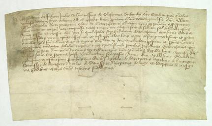 | Keywords: Zrzeczenie wszelkich praw i pretensji do Gotartowic.jpg Artwork pl Sąd ziemski sandomierski stwierdza że Klara żona Mikołaja Pieczonki z Gotartowic obecnie Gartatowice zrzekła się wszelkich praw i pretensji do Gotartowic na rzecz Michała prepozyta i klasztoru bożogrobców w Miechowie 1421-04-01 parchment 20 x 8 5 + 2 8 cm Institution Archiwum Główne Akt Dawnych nacięcia po 2 paskach od pieczęci; Dawne sygn V 193/2341; 211; 6; Induct continet fol LXVI ; Ex scat 10 Sub Nu 4 Miejsce powstania Wiślica Język dokumentu łac Druk/rękopis rękopis Forma oryginał Wydanie drukiem ZDMłp cz 2 nr 349 s 9 10 AGAD Zbiór Dokumentów Pergaminowych nr 2505 AGAD partnership PD-old-100 Documents from Archiwum Główne Akt Dawnych Zbiór Dokumentów Pergaminowych w Archiwum Główne Akt Dawnych |