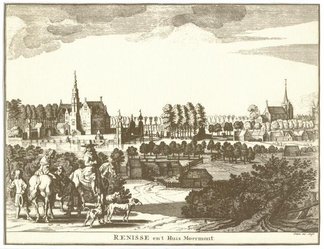 | Keywords: Zs32 Renisse en 't Huys Moermont³ Ottens.jpg 17e eeuws gezicht op het dorp Renesse het slot Moermond Speculum Zelandiae uitgave Ottens scan van afbeelding uit eigen verzameling 1650 - 1720 Roman; Visscher; Ottens Copper engravings Visscher cartographers Renesse PD-old-100 Slot Moermond |