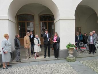 Keywords: ZS 2015c.JPG cs Zahájení vernisáže obrazů před vchodem nádvoří zámku na snímku starosta místostarostka a autoři obrazů ti vlevo own Zákupák 2015-09-12 Zákupské slavnosti 2015 Taken with Canon Digital IXUS 265 HS