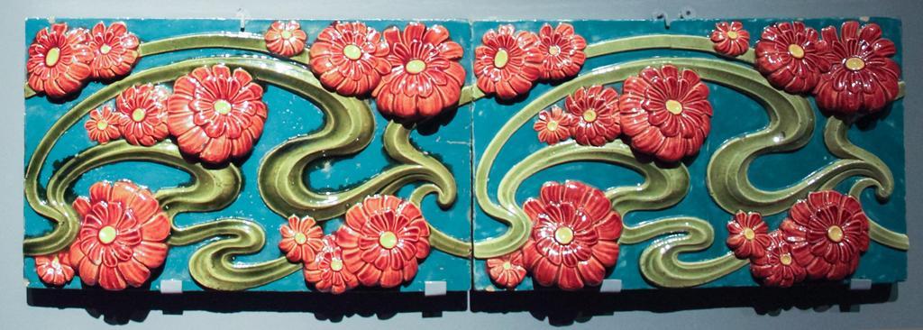 | Keywords: Zsolnay factory - Architectural elements for facede decoration.jpg object history credit line accession number own ; Photo by Szilas in the Budapest Museum of Applied Arts; temporary exhibition of the Masters of the Art Nouveau May 2013 - February 2014 Commonist PD-old Masters of the Art Nouveau - Exhibition of the Budapest Museum of Applied Arts in 2013 Art Nouveau tiles Zsolnay ceramics | ||||