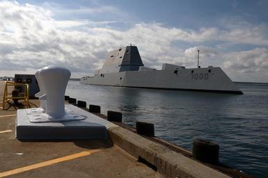 | Keywords: Zumwalt (DDG 1000) arrives at Naval Station Newport, Rhode Island. (29482397641).jpg NEWPORT R I Sept 8 2016 The guided-missile destroyer Pre-Commissioning Unit PCU Zumwalt DDG 1000 arrives at Naval Station Newport Rhode Island during its maiden voyage from Bath Iron Works Shipyard in Bath Maine The port visit marks Zumwalt ™s first stop before the ship ultimately sails to her new homeport of San Diego During the transit the ship is scheduled to take part in training operations a commissioning ceremony in Baltimore and various additional port visits Zumwalt is named for former Chief of Operations Elmo R Zumwalt and is the first in a three-ship class of the Navy ™s newest most technologically advanced multi-mission guided-missile destroyers U S Navy photo by Chief Mass Communication Specialist James E Foehl/Released 160908-N-PX557-086 Join the conversation http //www navy mil/viewGallery asp www navy mil/viewGallery asp http //www facebook com/USNavy www facebook com/USNavy http //www twitter com/USNavy www twitter com/USNavy http //navylive dodlive mil navylive dodlive mil http //pinterest com pinterest com https //plus google com plus google com https //www flickr com/photos/usnavy/29482397641/ Zumwalt DDG 1000 arrives at Naval Station Newport Rhode Island 2016-09-08 15 28 https //www flickr com/people/56594044 N06 Official U S Navy Page from United States of America MCC AW/SW/EXW James E Foehl/U S Naval War College Public Affairs Attribution License IPTC Caption-Abstract U S Navy photo PD-USGov-Military-Navy Official U S Navy Imagery https //flickr com/photos/56594044 N06/29482397641 2016-09-14 15 30 56 cc-by-2 0 160908-N-PX557-086 Navy Files from the U S Navy Flickr stream Naval Station Newport Photographs taken on 2016-09-08 September 2016 in Rhode Island USS Zumwalt DDG-1000 Taken with Nikon D4 |