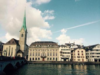 Keywords: zurich limmath river fraumünster church sky switzerland chagall