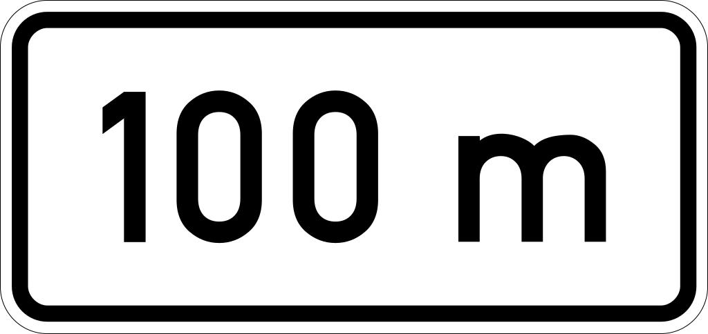 | Keywords: Zusatzzeichen 741 - nach 100 m, StVO 1970.svg de Zusatzzeichen 701; nach 100 m; Quelle Bundesgesetzblatt Jahrgang 1970 Nr 108 S 1581 Tag der Ausgabe Bonn 5 Dezember 1970 own gezeichnet von Mediatus Mediatus 12 August 2013 Herstellungsdatum + Signs User Mediatus/no-new-version Cc-zero PD-VzKat Diagrams of danger warning road signs of Germany 1971 set 741 svg Diagrams of additional signs of Germany 1971 set 741 svg SVG road signs in Germany 741 | ||||