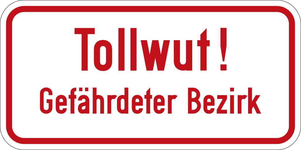 View Original:Zusatzzeichen - Tollwut! Gefährdeter Bezirk, StVO 1970.svg (965x482)