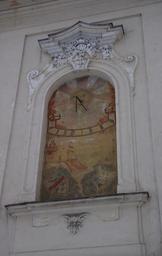 | Keywords: Żywiec Nowy Zamek 006.JPG Nowy Zamek w Żywcu zegar słoneczny Widoczne na malowidle herby to herb miasta Żywiec oraz herby Galicji i Lodomerii Sonnenuhr am Neuen Schloss in Żywiec own Janericloebe 2010-01 Habsburg Palace in Żywiec Sundials in Poland Vertical sundials |